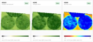 Additionally, considering the timing (mid-August), areas outside irrigation coverage (corners) have already lost a significant portion of their production potential, which is clearly visible on the NDMI map.